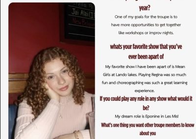 If you’d like to learn more about the theater program at Land O’ Lakes High School, please email Mrs. Hydes. Don’t forget to check out our photo gallery of past productions and the promo for one of our upcoming musicals for the 2025–2026 year!