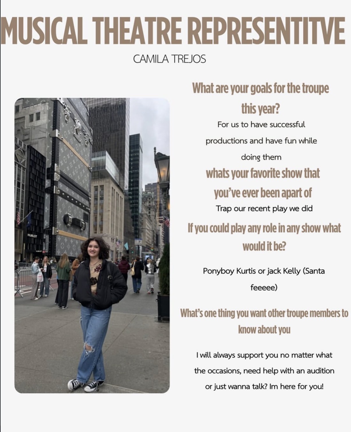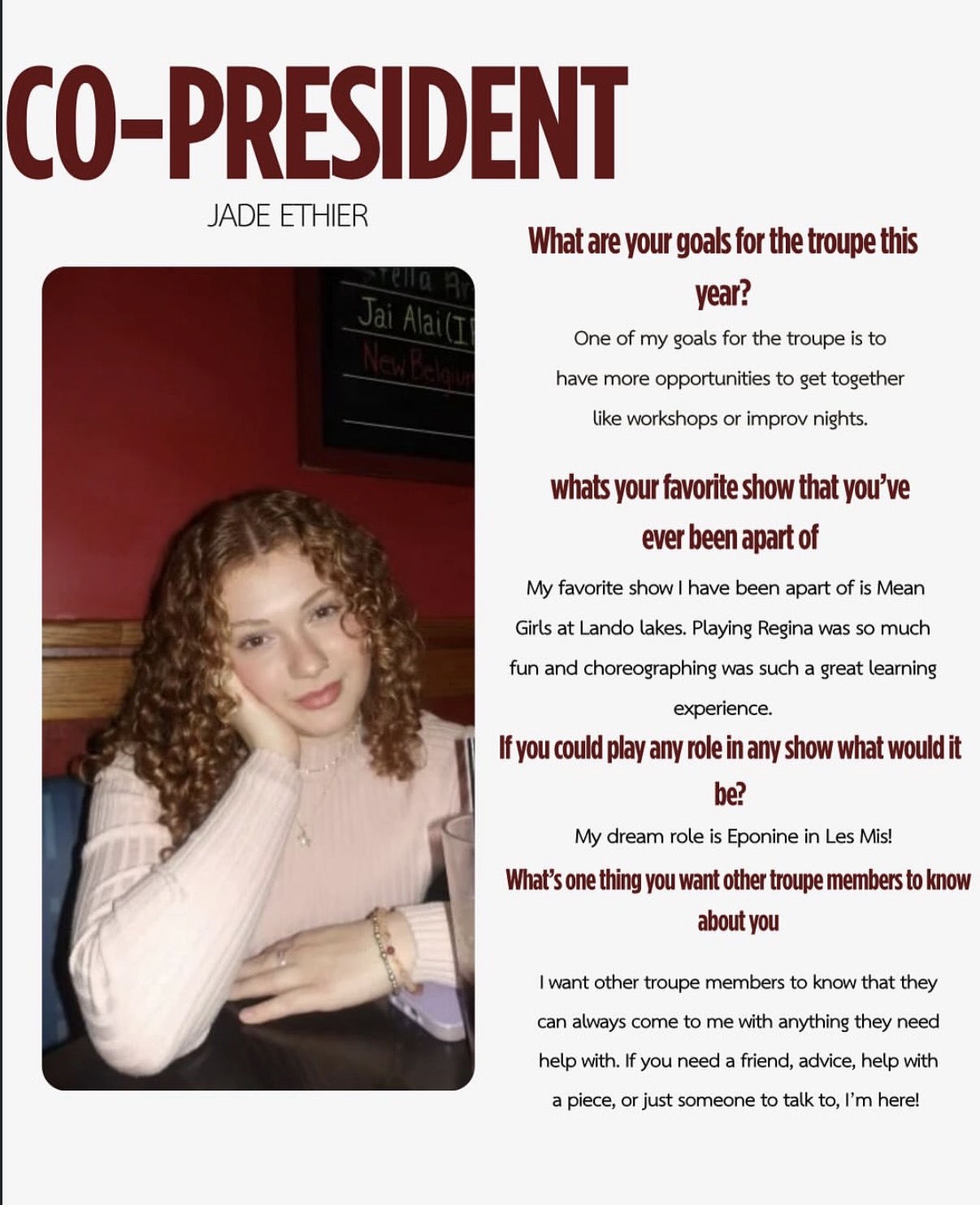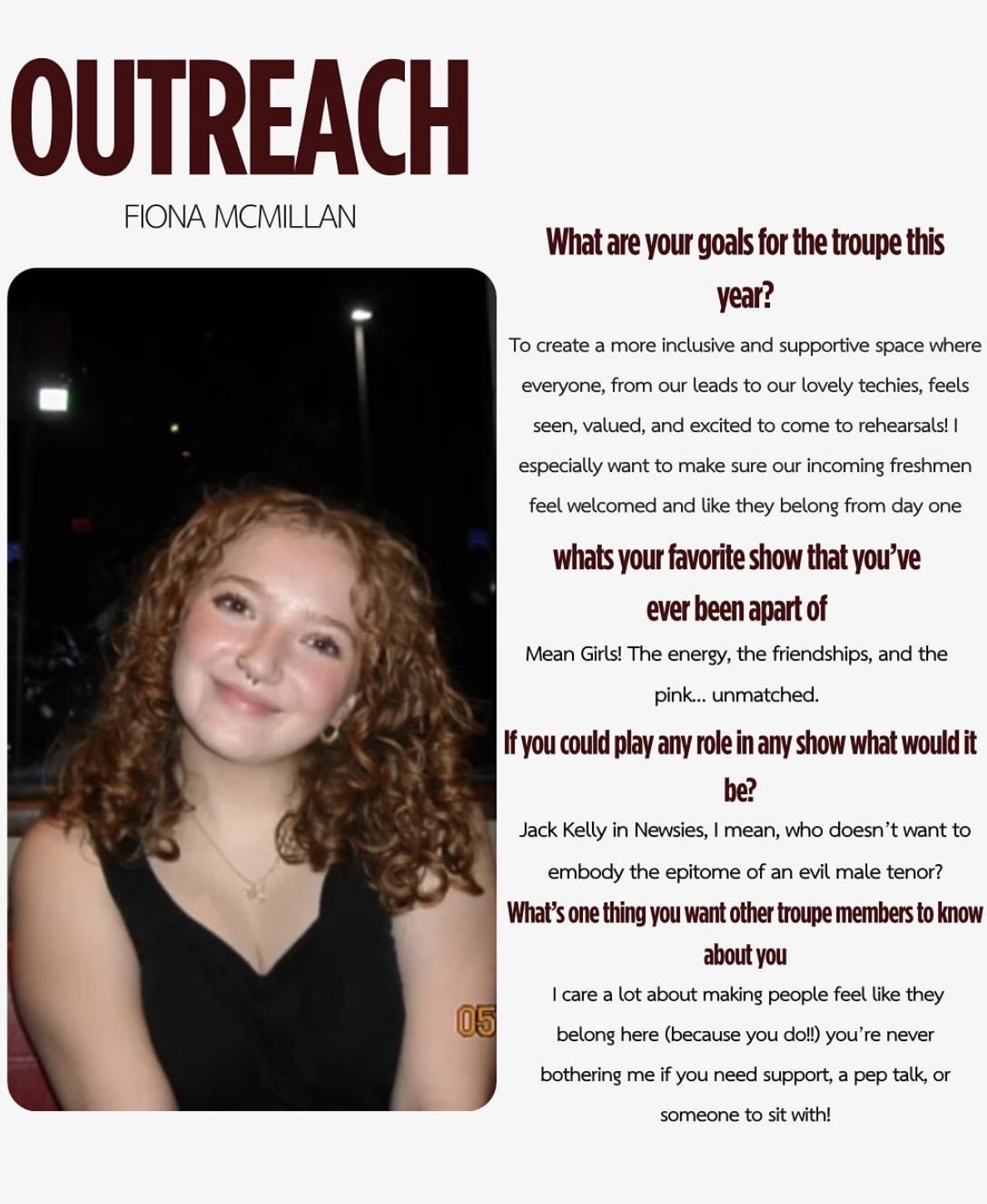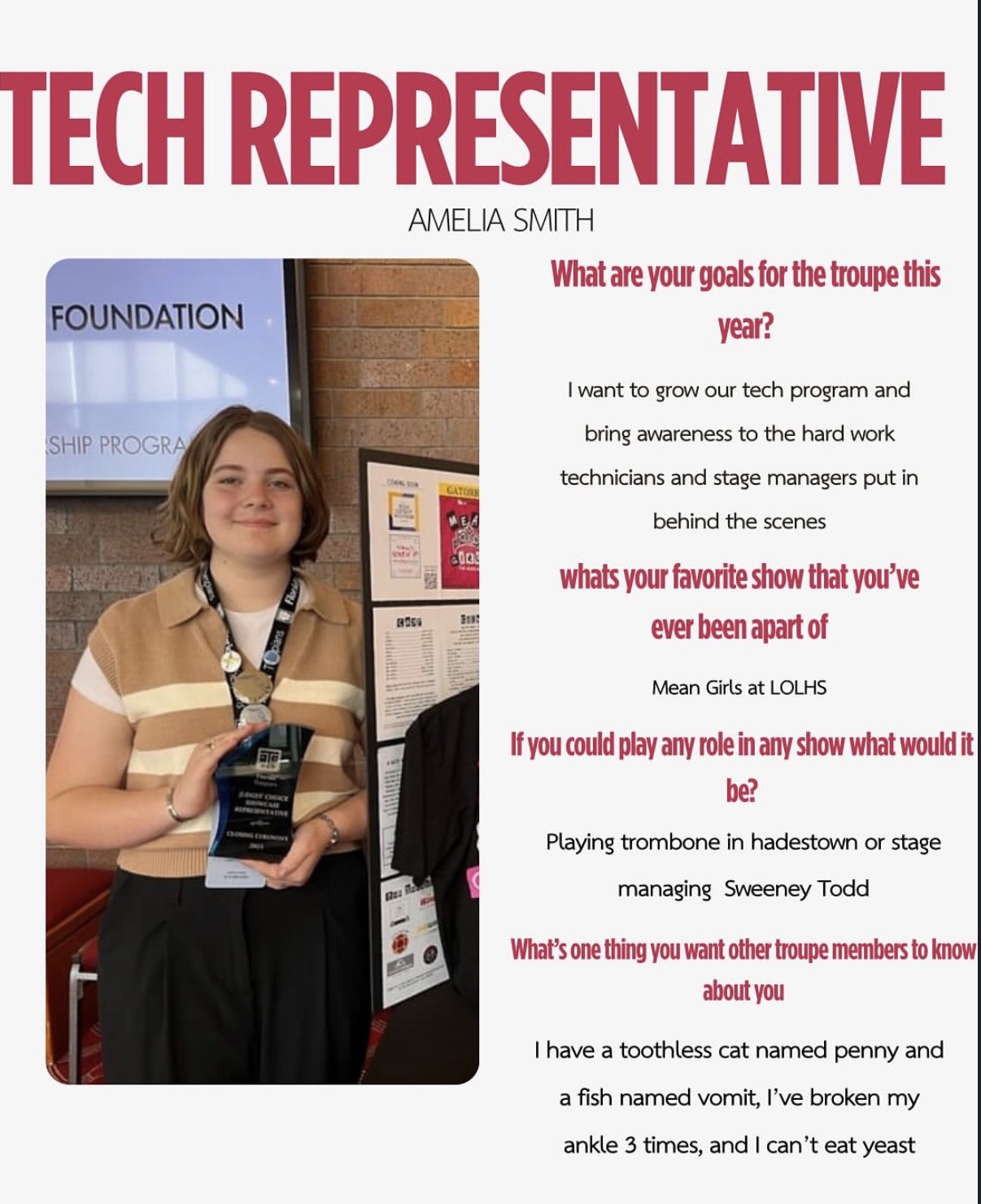 Fees: Students who choose to audition and accept a role may be required to pay a participation fee. The amount varies by production and helps cover the cost of costumes, paint, props, set pieces, and other materials needed for the show.